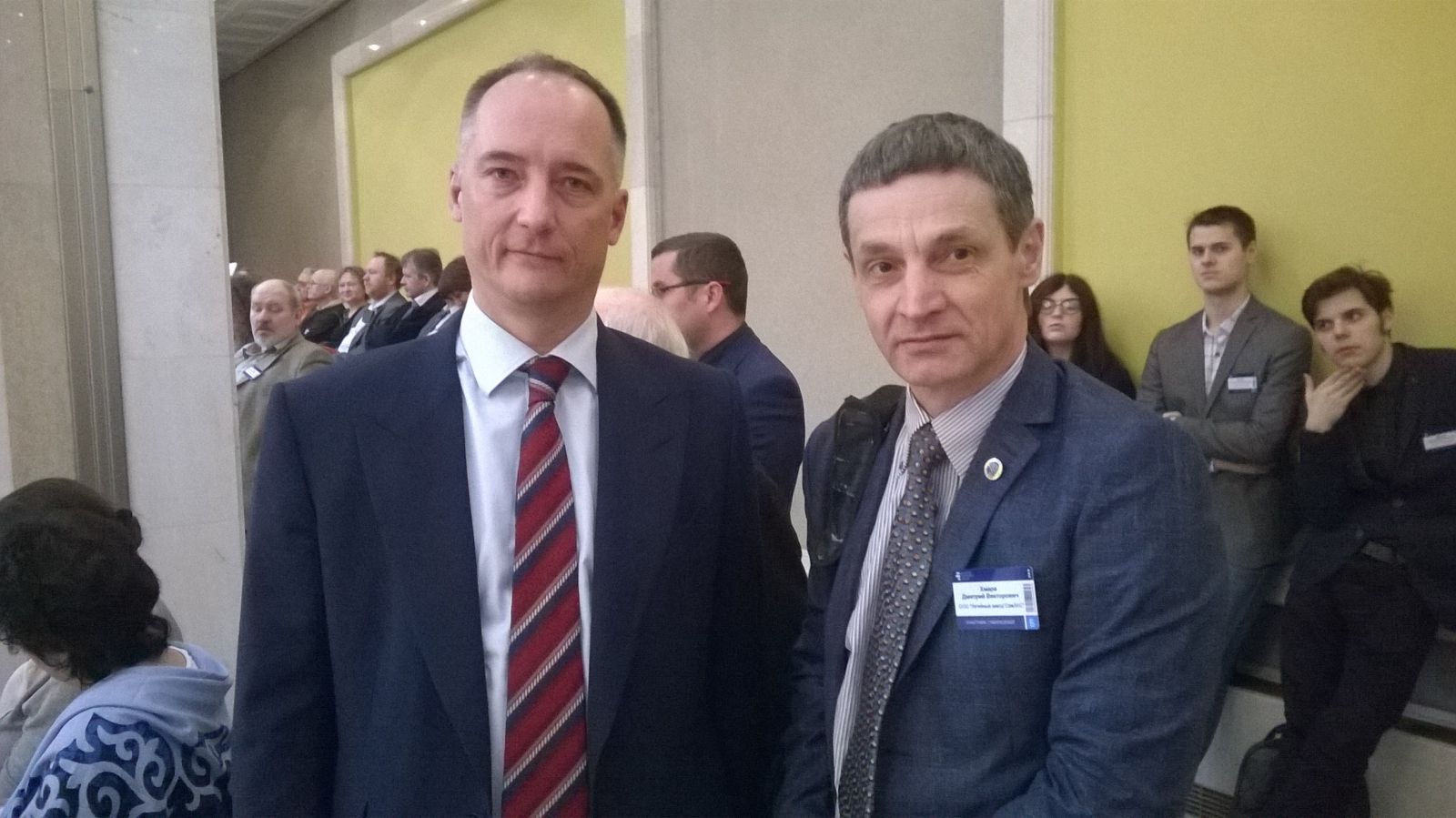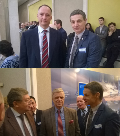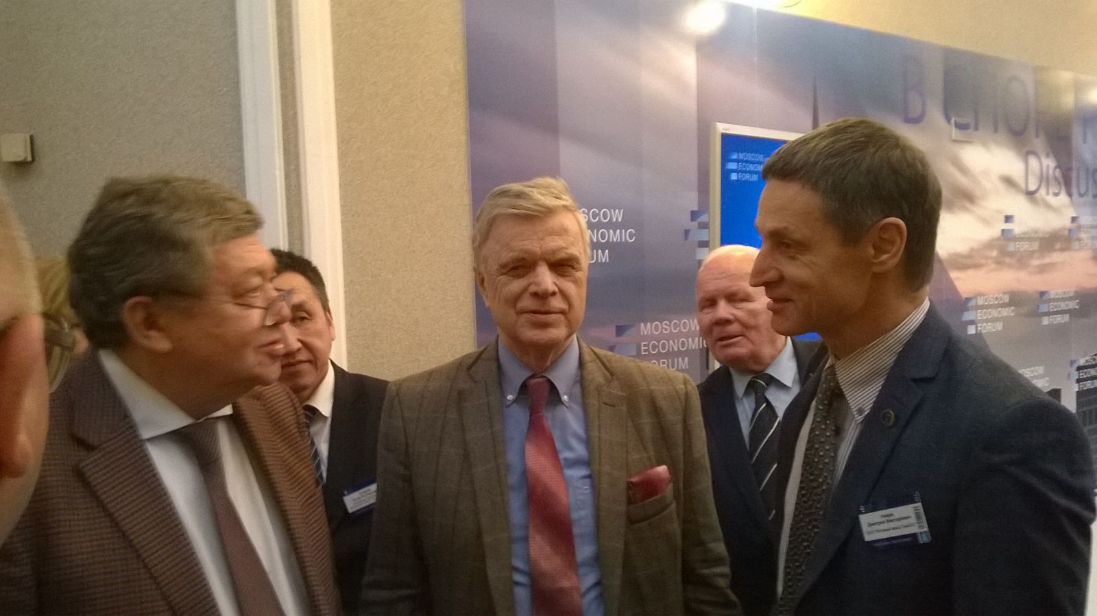 С Русланом Гринбергом член-корреспондентом РАН , директором Института экономики РАН , модератором форума и Русла́ном Хасбула́товым член-корреспондентом РАН, , последним председателем Верховного Совета Российской Федерации, сейчас -- заведующим кафедрой мировой экономики РЭУ им. Г. В. Плеханова.